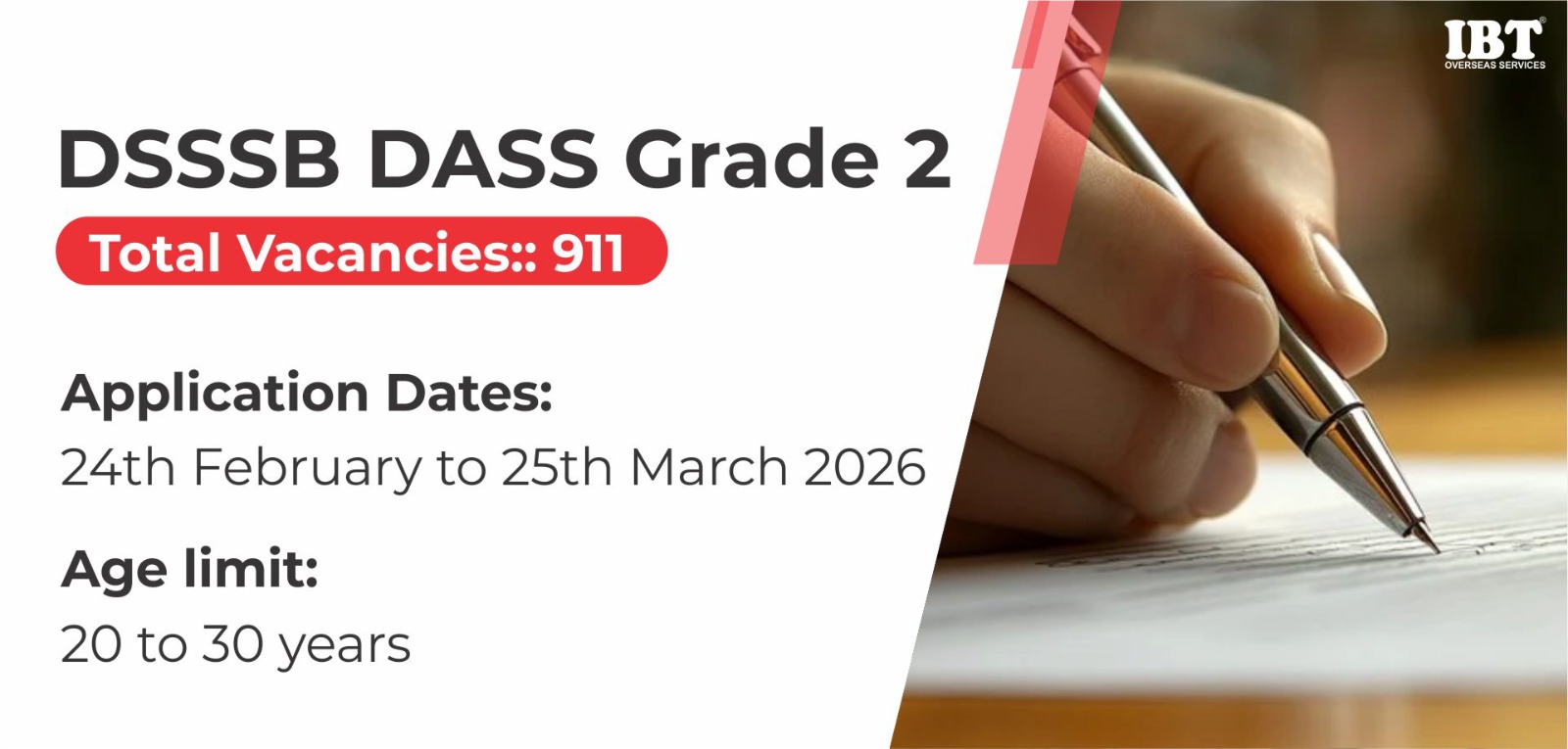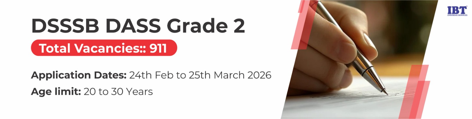 A total of 911 vacancies are expected for Legal Assistant, Junior Law Officer, DASS Grade-II, and ASO posts that will be recruited for Legal Assistant, Grade-II (GNCTDSS), Assistant Section Officer, and other posts under DSSSB DASS Grade 2 Recruitment 2026.