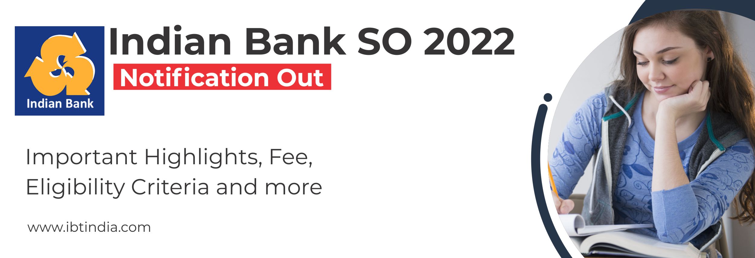 The notification for Indian Bank SO recruitment 2022 has been released by the Indian Bank. The total number of vacancies is 312. The application forms are available on the official website of the bank from 24 May-2022. The last date to submit the application form is 14-June-2022. Eligible and interested candidates can apply for the posts through the official website of the bank. Candidates are advised to go through the official notification before filling out their application forms. The detailed information about the recruitment of specialist officers is given below.